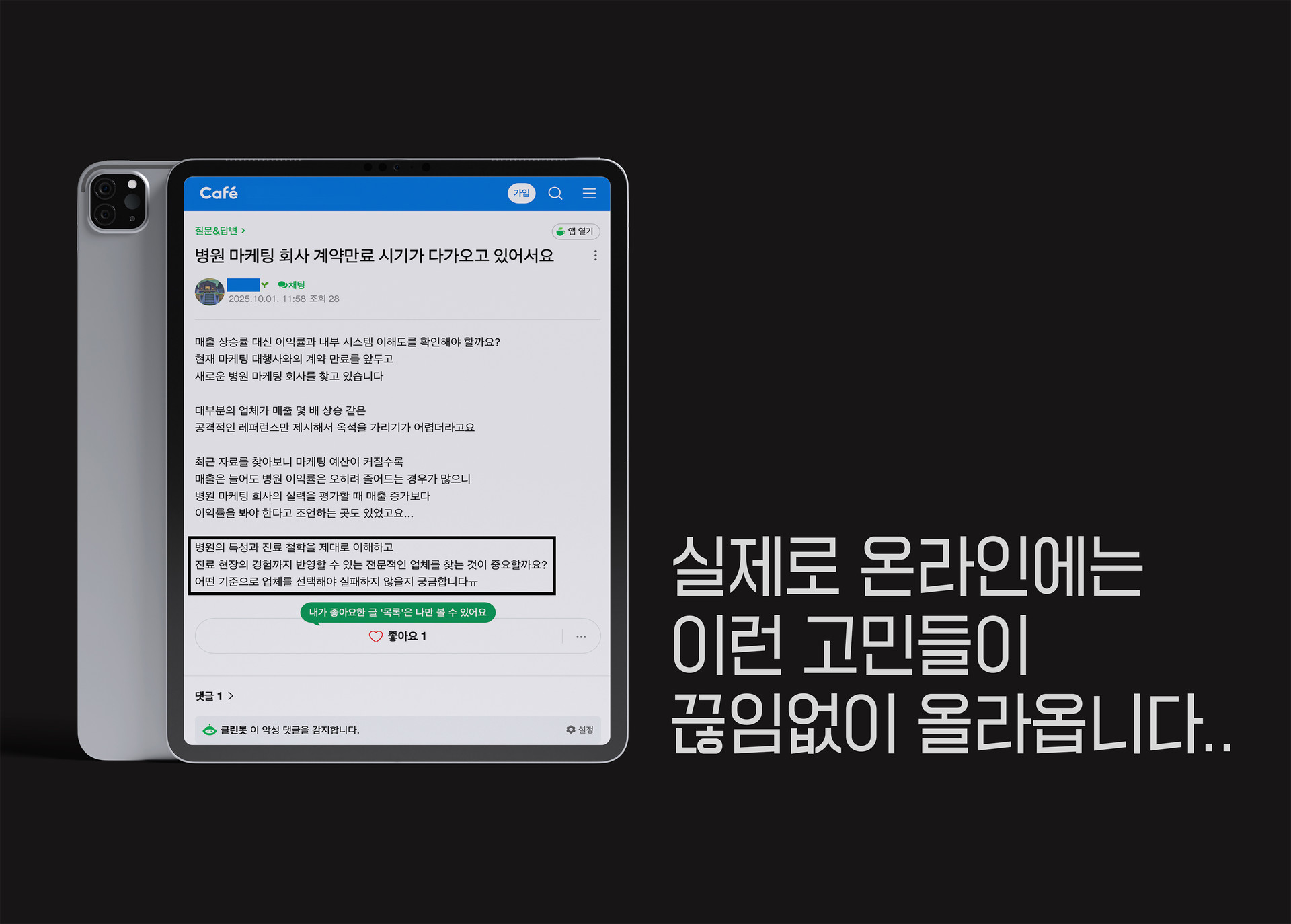 우리 병원이 어디서 막히는지, 1:1로 정확히 짚어드리겠습니다.